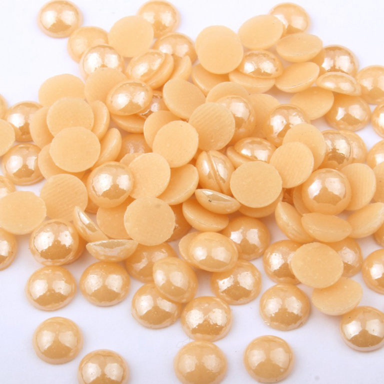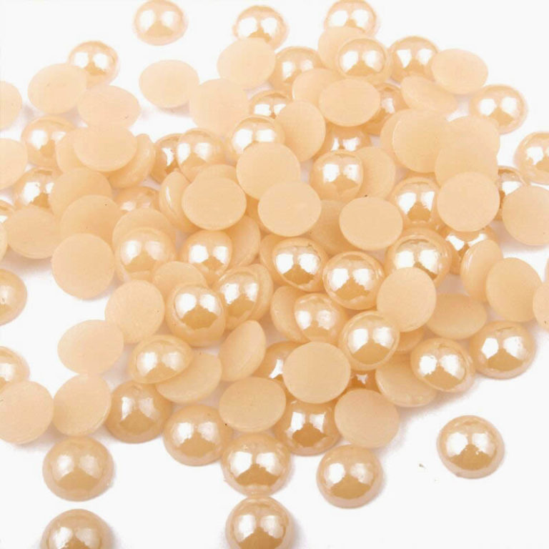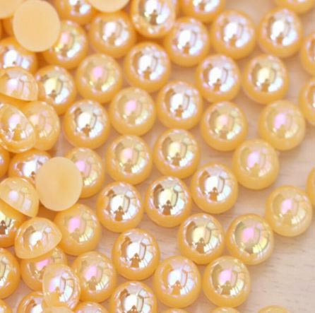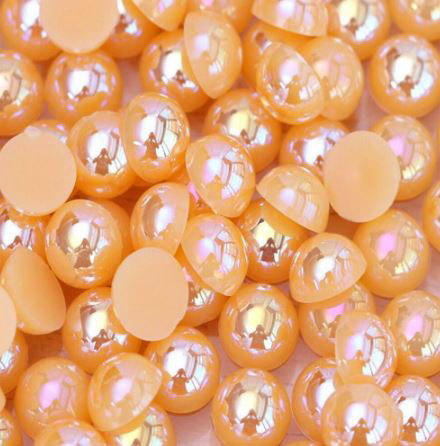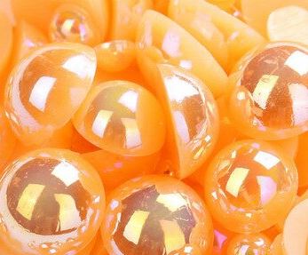 Műanyag, ragasztható félgyöngy barack alapú, irizáló AB réteggel bevont árnyalat. Méretek: 5, 6 és 8 mm. Az ár 1 csomag gyöngyre értendő.