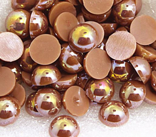 Műanyag, ragasztható félgyöngy barna alapú, irizáló AB réteggel bevont árnyalat. Méretek: 5, 6 és 8 mm. Az ár 1 csomag gyöngyre értendő.