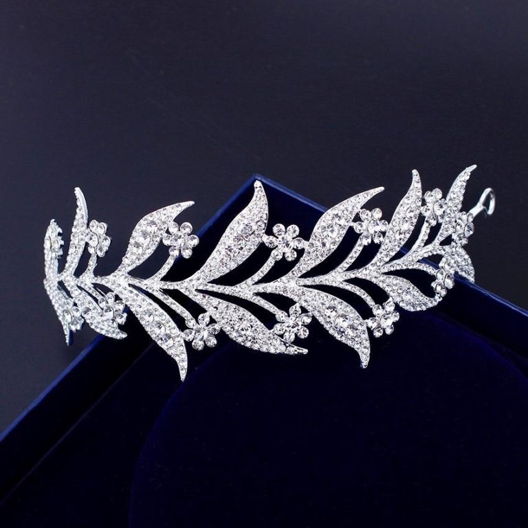 Ezüstszínű fém alapú, csillogó, Crystal árnyalatú kristályokkal díszített menyasszonyi tiara. Különleges esküvői fejdísz.