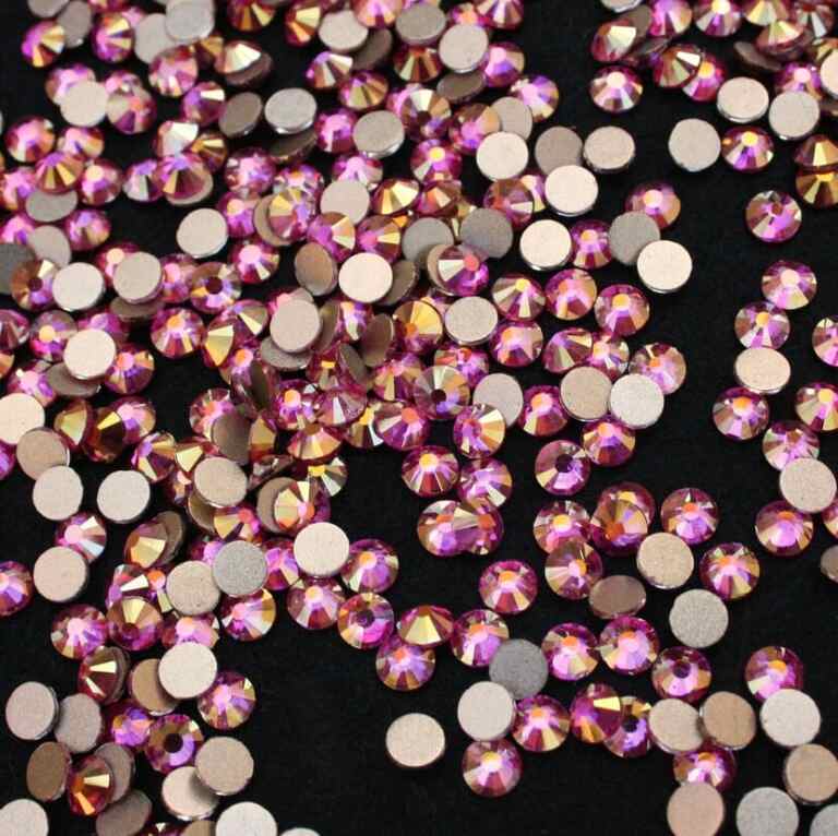 Különleges, pink árnyalatba csillanó, irizáló (színjátszó) AB réteggel bevont halvány barackszínű strassz. Minden ruhát ragyogóvá tesz.