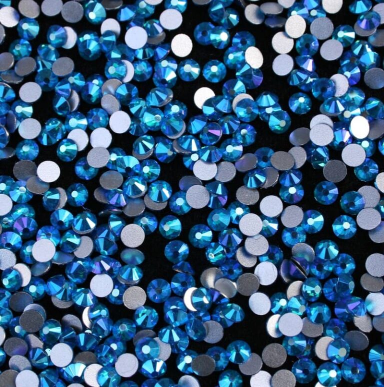 Türkizkék árnyalatú, irizáló AB ragasztható strasszkő SS10, SS12, SS16, SS20 és SS30-as méretben. Prémium minőségű, csillogó kristálykő.