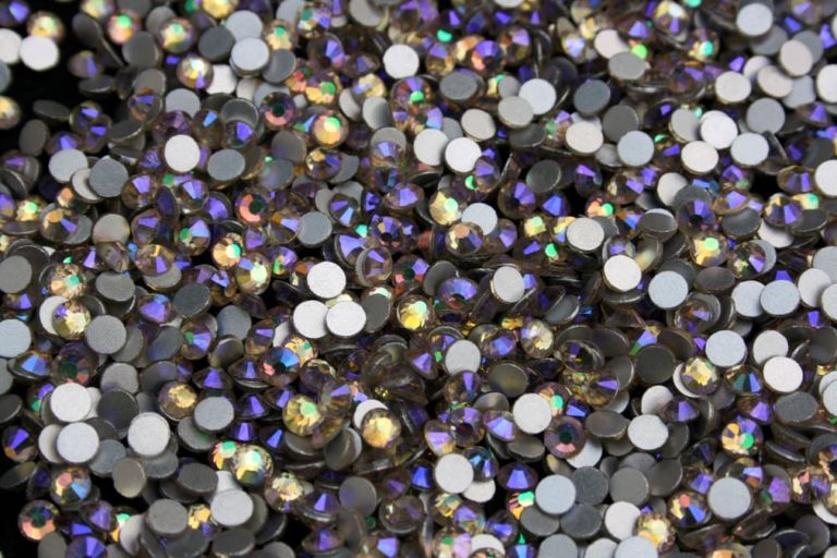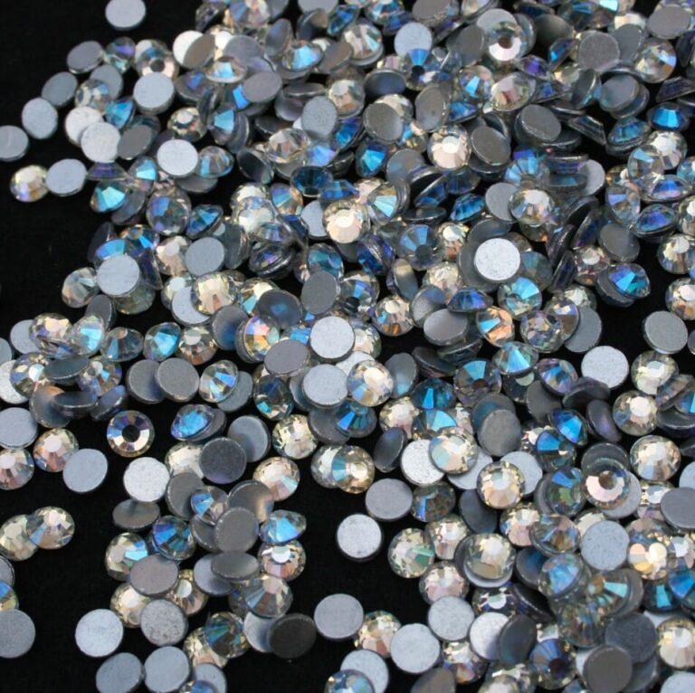 Pezsgő alapszínű, kékesen irizáló ragasztható strasszkő SS16, SS20 és SS30-as méretben. Prémium minőségű, ragyogó csiszolású, különleges kristálykő.