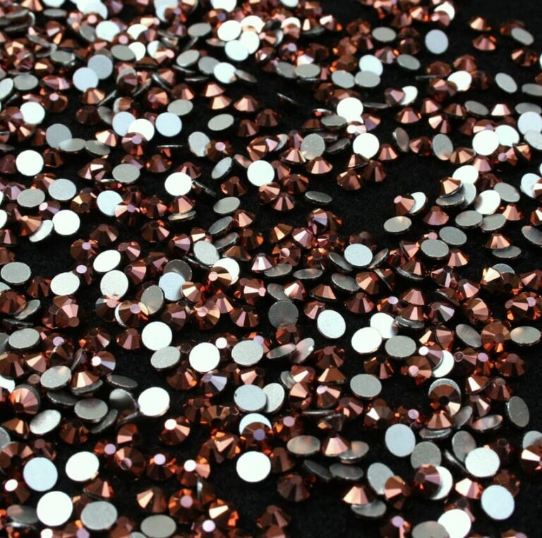 Fémes bevonatú, rózsaarany árnyalatú ragasztható strasszkő SS10, SS12, SS16, SS20 és SS30-as méretben, prémium minőségben.