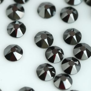 Grafitszürke színű, fémes bevonatú ragasztható strasszkő SS20-as méretben, xirius metszéssel. Prémium minőségű, ragyogó csiszolású kristálykő.