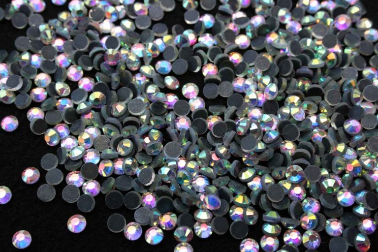 Irizáló kristály AB színű vasalható strasszkő SS16, SS20 és SS30-as méretben, xirius metszéssel. Prémium minőségű, csillogó kristálykő.