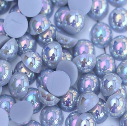 Műanyag, ragasztható félgyöngy kék alapú, irizáló AB réteggel bevont árnyalat. Méretek: 5, 6 és 8 mm. Az ár 1 csomag gyöngyre értendő.