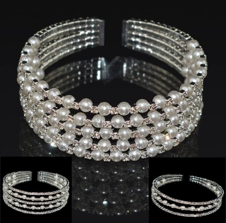 Fehér gyöngyökkel díszített kristály karkötő crystal árnyalatú, csillogó strasszokkal. 3 féle formában. Prémium minőségű ékszer.