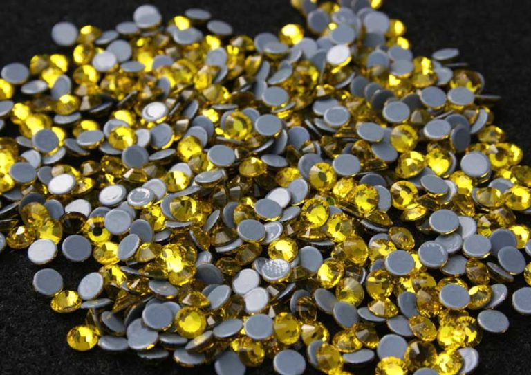 Sárga árnyalatú, prémium minőségű vasalható strasszkő SS10, SS16, SS20 és SS30-as méretben. Ragyogó csiszolású, csillogó kristálykő.