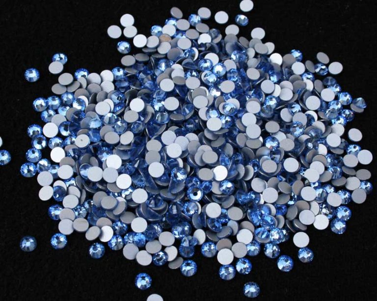 Világoskék színű körömstrassz, kiváló minőségű metszett üvegből, SS3, SS4, SS5, SS6 és SS8-as méretben. Az ár 100 db körömkristályra értendő.