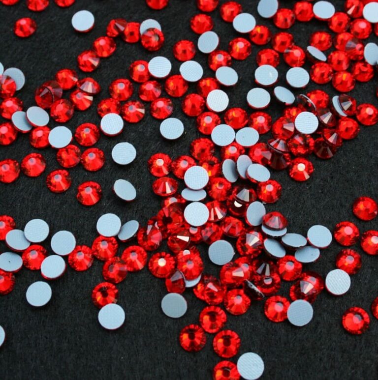 Élénkpiros árnyalatú, prémium minőségű vasalható strasszkő SS10, SS16, SS20 és SS30-as méretben. Ragyogó csiszolású, csillogó kristálykő.
