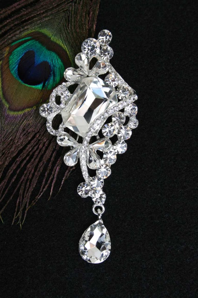 Lógós cseppes kristály kitűző: 414-crystal modell ezüst alappal, valamint kristály színű kövekkel. Tűvel illeszthető ruhadísz, melynek mérete 9x4 cm.