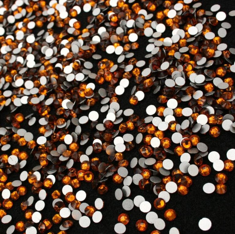 Borostyán árnyalatú, irizáló AB ragasztható strasszkő SS20-as méretben, xirius metszéssel. Prémium minőségű, ragyogó csiszolású kristálykő.