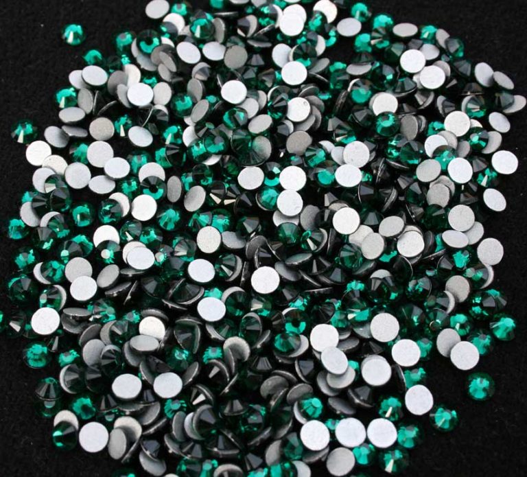 Sötétzöld színű körömstrassz, kiváló minőségű metszett üvegből, SS4 és SS6-os méretben. Az ár 100 db körömkristályra értendő.