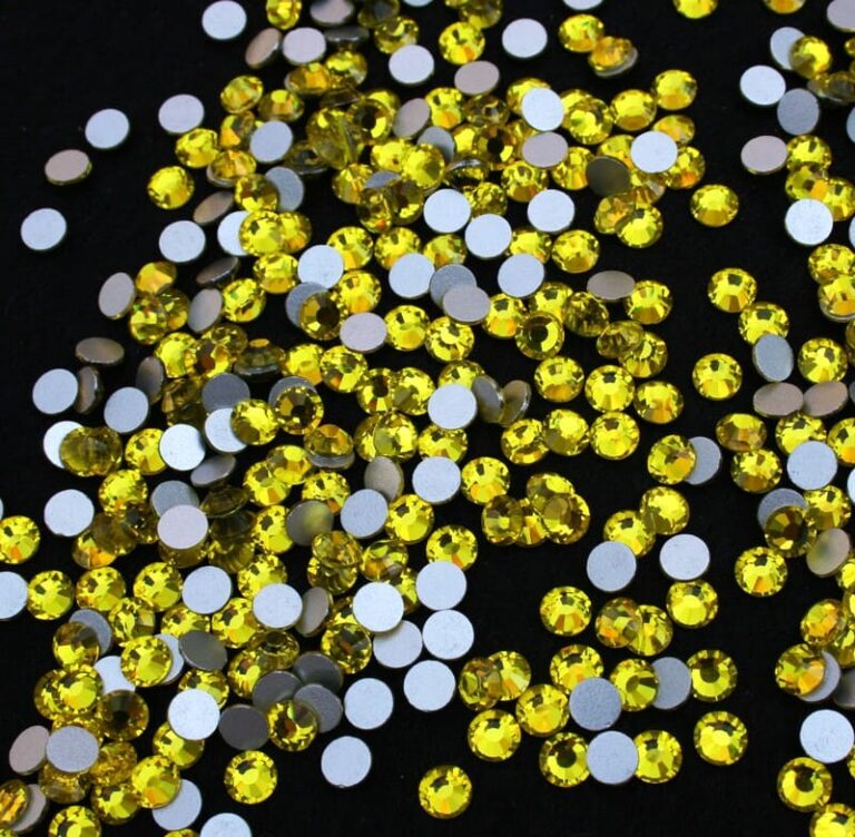 Sárga színű ragasztható strasszkő SS10, SS12, SS16, SS20, SS30,SS34 és SS50-es méretben. Prémium minőségű, világos árnyalatú kristálykő.