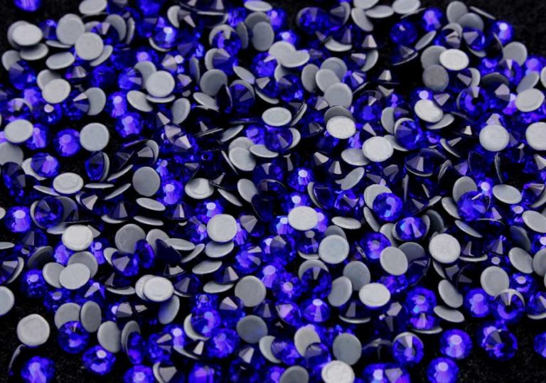 Éjkék árnyalatú, prémium minőségű vasalható strasszkő SS10, SS16, SS20 és SS30-as méretben. Ragyogó csiszolású, csillogó kristálykő.