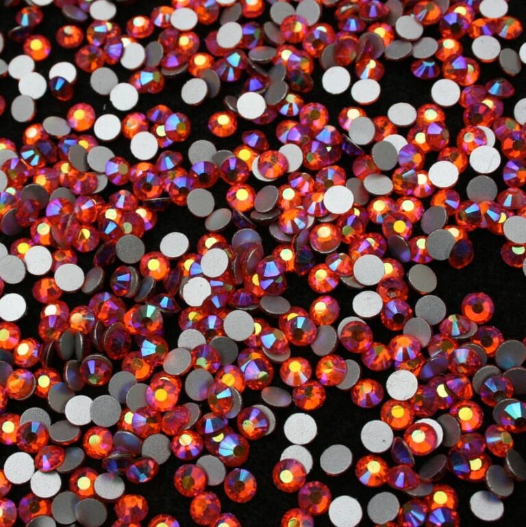 Narancssárga árnyalatú, irizáló AB ragasztható strasszkő SS10, SS12, SS16, SS20 és SS30-as méretben. Prémium minőségű, csillogó kristálykő.
