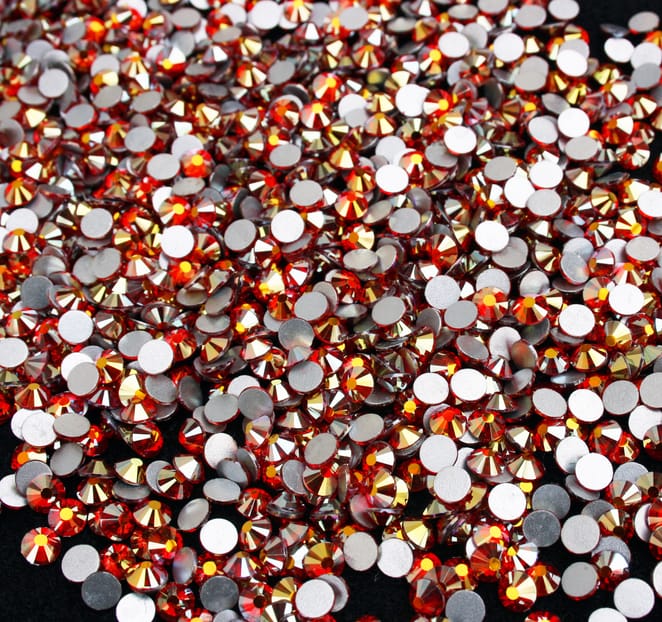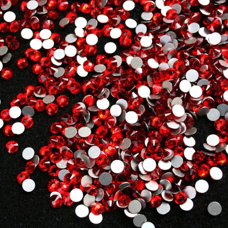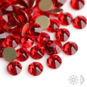Élénkpiros árnyalatú ragasztható strasszkő SS10, SS12, SS16, SS20, SS30, SS34, SS40 és SS50-es méretben. Prémium minőségű, ragyogó kristálykő.
