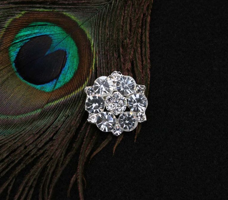 Crystal színű bross - kristály kitűző: 427-crystal modell ezüst alappal, valamint kristály színű kövekkel. Tűvel illeszthető ruhadísz, melynek mérete 2,5 cm.