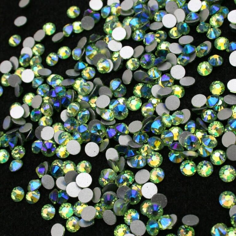 Zöld árnyalatú, irizáló AB ragasztható strasszkő SS10, SS12, SS16, SS20 és SS30-as méretben. Prémium minőségű, csillogó kristálykő.