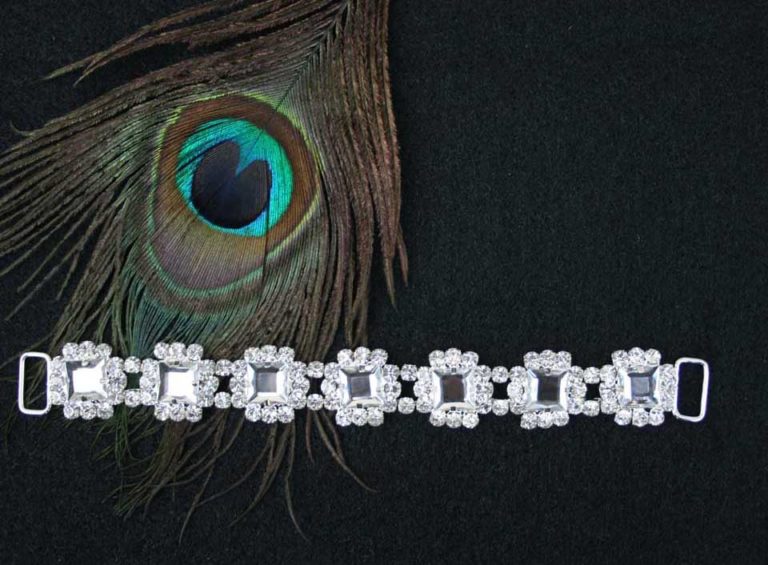 Kristály- és bikinipánt 207-20 cm-es modell ezüst alappal és kristály színű kövekkel. Varrással illeszthető strasszpánt, melynek mérete 20x2 cm.