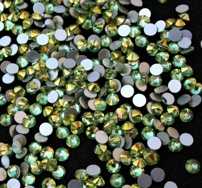Világoszöld árnyalatú ragasztható strasszkő SS10, SS12, SS16, SS20, SS30 és SS34-es méretben. Prémium minőségű, ragyogó kristálykő.
