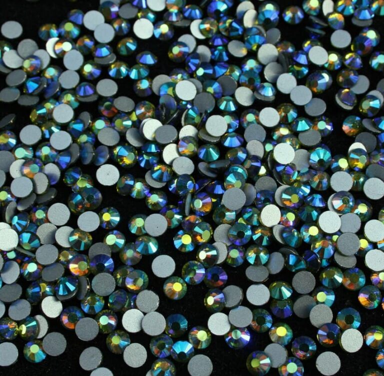 Olajzöld árnyalatú, irizáló AB ragasztható strasszkő SS10, SS12, SS16, SS20 és SS30-as méretben. Prémium minőségű, csillogó kristálykő.