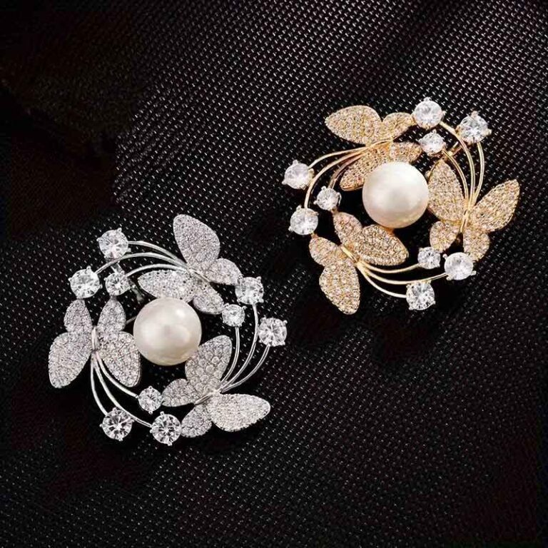 Gyöngyös, kristály pillangókkal díszített bross - kristály kitűző: 440. modell arany vagy ezüst alappal. Tűvel illeszthető ruhadísz, melynek mérete 4 cm.