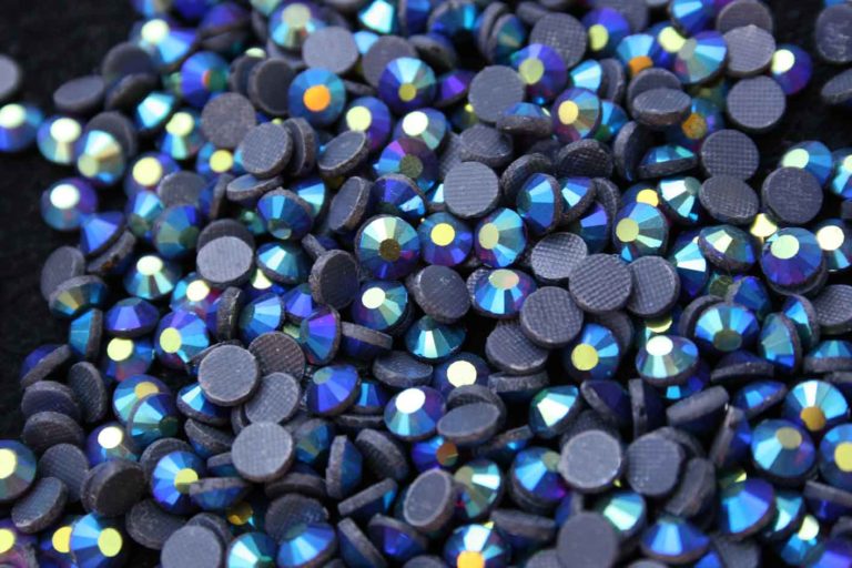 Sötétkék árnyalatú, aranylóan irizáló bevonatos ragasztható strasszkő SS16, SS20 és SS30-as méretben. Prémium minőségű, csillogó kristálykő.
