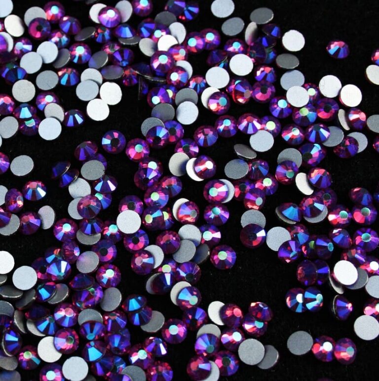 Magenta árnyalatú, irizáló AB ragasztható strasszkő SS10, SS12, SS16, SS20 és SS30-as méretben. Prémium minőségű, csillogó kristálykő.