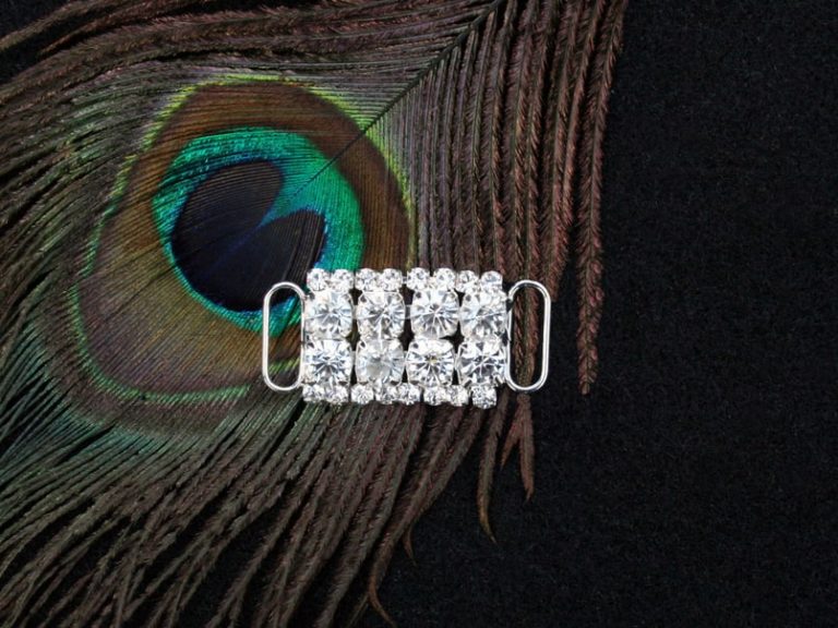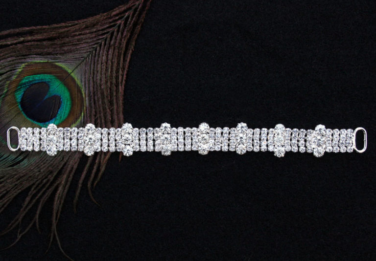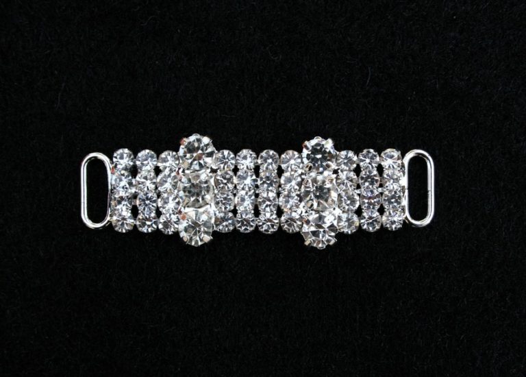 Kristály- és bikinipánt 217-4 cm-es modell ezüst alappal és kristály színű kövekkel. Varrással illeszthető strasszpánt, melynek mérete 4x2 cm.