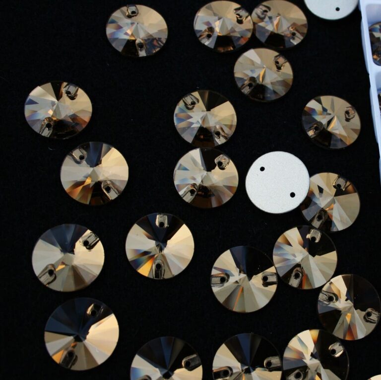 Kör alakú varrható kristálykő aranybarna színben, 10, 12, 14, 16, 18 mm-es méretben. Szikrázó fényű, prémium csiszolású kő. Anyaga: kristályüveg.