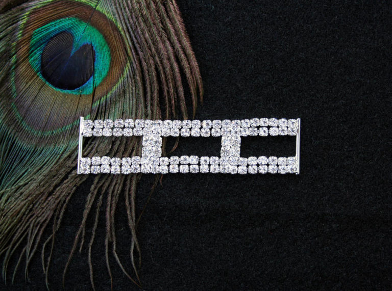 Kristály- és bikinipánt 221-8 cm-es modell ezüst alappal és kristály színű kövekkel. Varrással illeszthető strasszpánt, melynek mérete 8x2 cm.