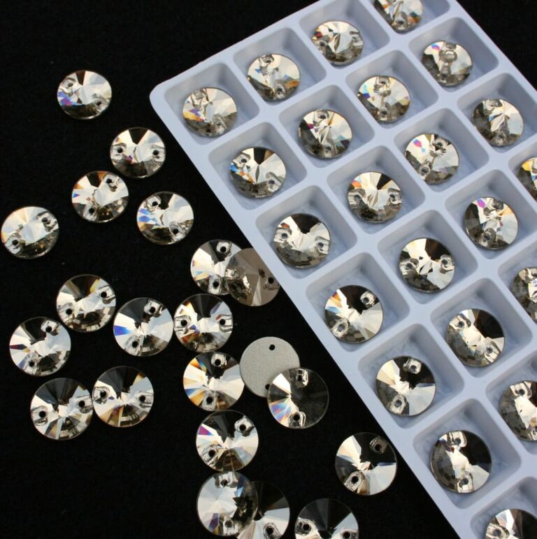 Kör alakú varrható kristálykő halvány aranyszínben, 12, 18 mm-es méretben. Szikrázó fényű, prémium csiszolású kő. Anyaga: kristályüveg.
