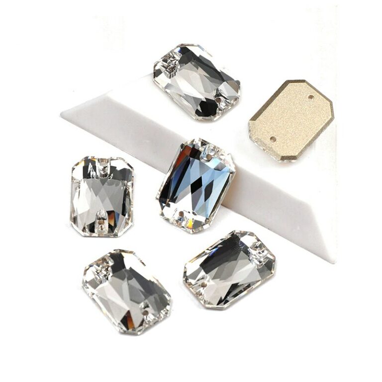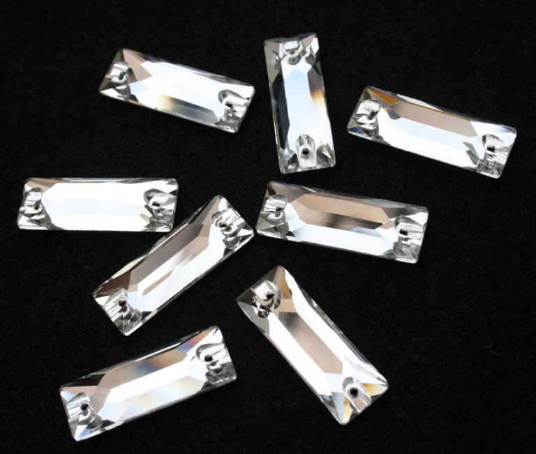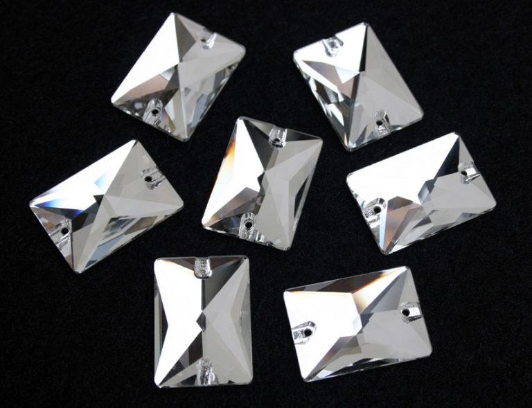 Smaragd metszésű, téglalap alakú varrható kristálykő kristály színben, 10x14, 14x20 és 20x28 mm-es méretben. Szikrázó fényű, ragyogó csiszolású kő.