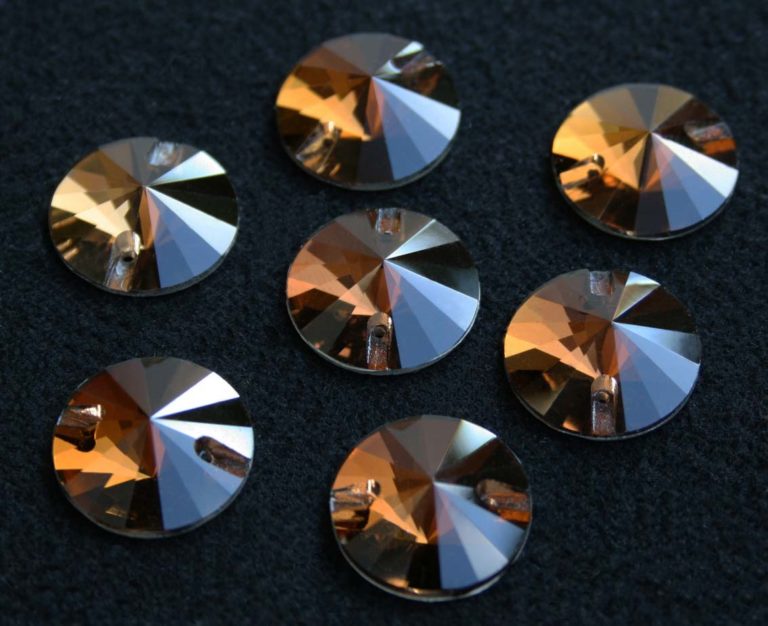 Kör alakú varrható kristálykő világos aranyszínben, 10, 12, 14, 16, 18 mm-es méretben. Szikrázó, prémium csiszolású kő. Anyaga: kristályüveg.